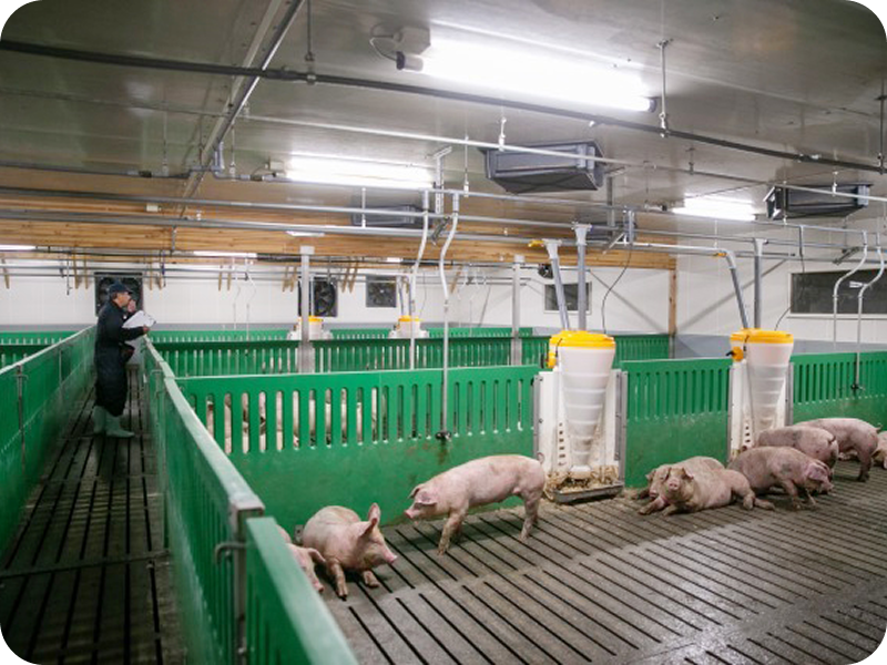防疫面や周囲への臭気対策が強化されたウインドレス構造の豚舎